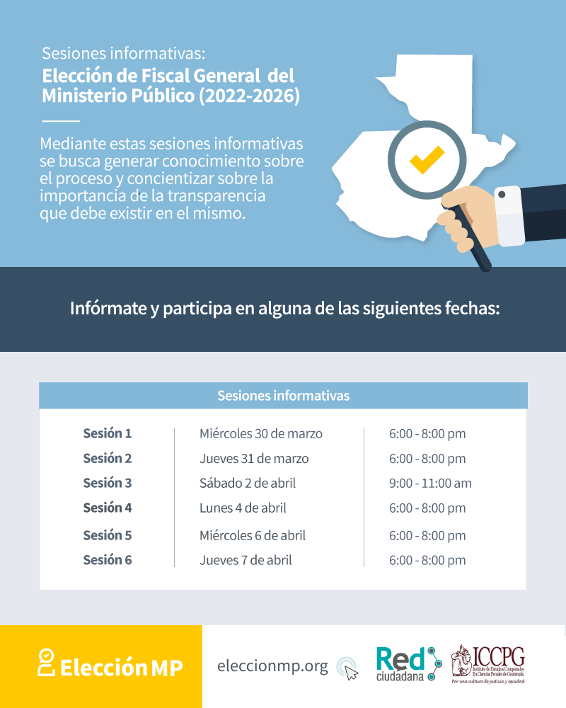 Para participar en las sesiones informativas de seguimiento al proceso de: Elección MP, es indispensable que llenar el siguiente formulario. Posteriormente te estaremos contactando y estaremos brindando toda la información sobre el mismo. Mas Información: Brief